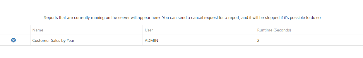 ) button to send a cancellation request to the server. If it’s possible to cancel the report, the server will stop processing it and return a cancellation message to the user.