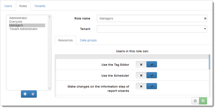 Tenant the tenant the role belongs to; this isn’t available for the Administrator, Everyone, or Tenant Administrator roles. Select the desired tenant from the drop-down list of tenants or No tenant if the role is available to all tenants.