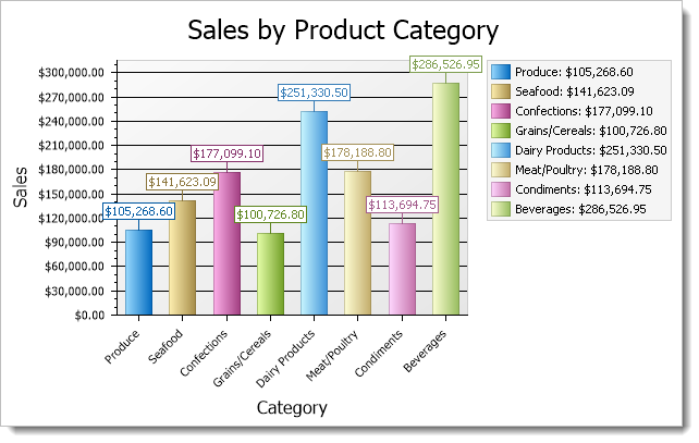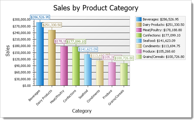 This one is sorted in descending order on the data field, so the bars are arranged with the largest total sales at the left.