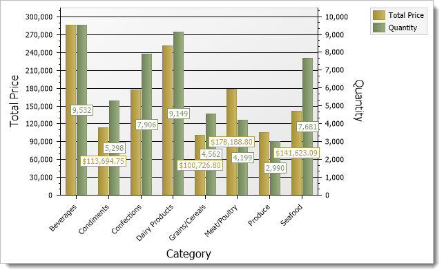 Here’s an example that shows Total Price and Quantity both used as data fields: