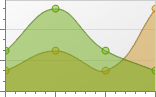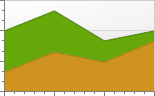 | Area | Displays series as filled areas on a diagram, with each data point displayed as a peak or hollow in the area. This is useful when you need to show trends for several series on the same diagram and also show the relationship of the parts to the whole. | Both | ![]() |
