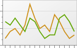| Line | Displays values connected by lines. This is useful to show trends for several series on the same chart and to compare the values of several series for the same category values. | Both | ![]() |