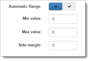 - Automatic Range: this option only appears when you edit the properties for the Y-Axis. Turn this off to change the values for Min value, Max value, and Side margin. These values represent the desired manual range for the Y-Axis, with the side margin value representing an optional range for the axis above the maximum Y-Axis value.