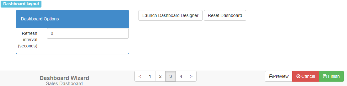 Step 3 allows you to control the layout of the reports in the dashboard and how often they refresh.