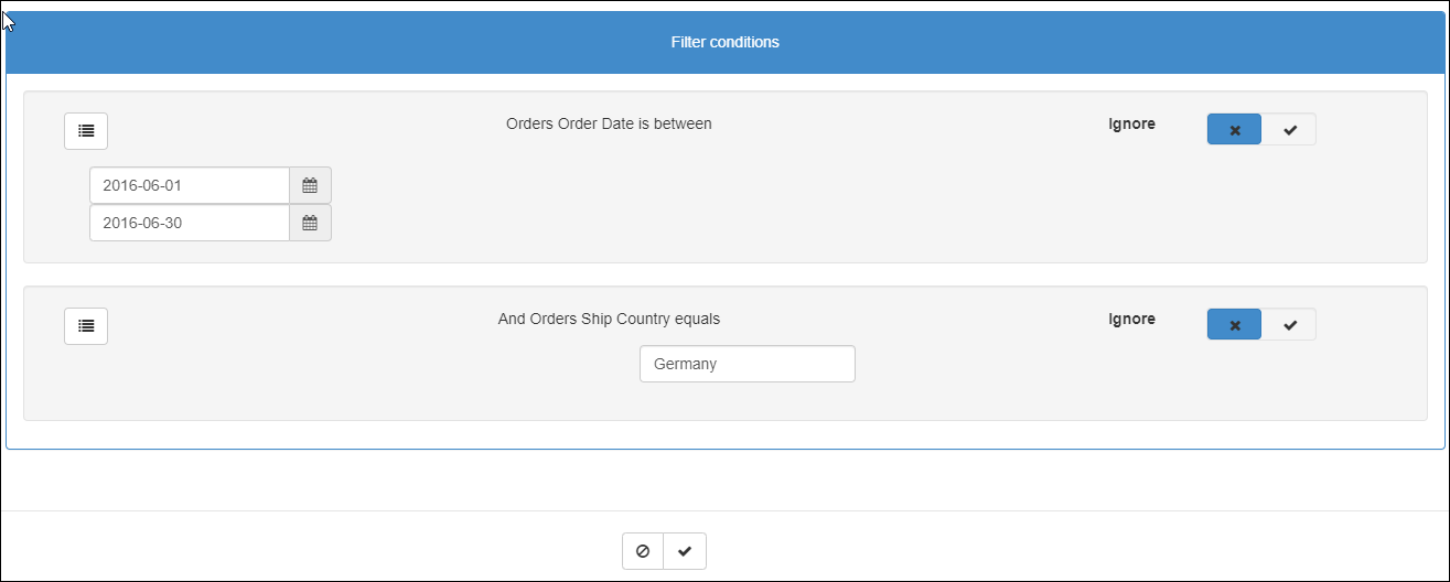 If you want a condition to be ignored for this run of the report, turn on the Ignore option. This acts as if the filter condition doesn’t exist.