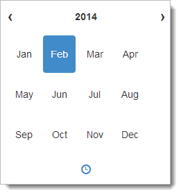 Click the month at the top of the calendar to display a list of months in the selected year you can select from. Clicking a month moves the calendar to that month. Click the left or right arrows to move to the previous or next year.