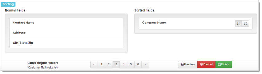 Step 3 lets you choose the order in which records appear in the report. For example, you may wish to have the labels sorted by country and within country by company name.
